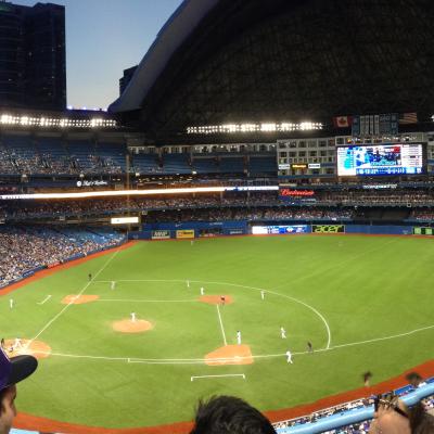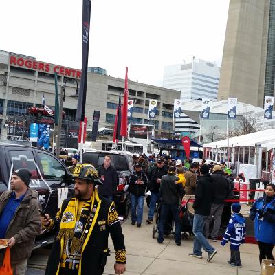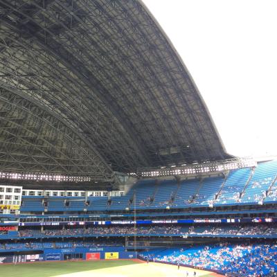 Rogers Centre (originally known as SkyDome) is a multi-purpose stadium in downtown Toronto, Ontario, Canada situated next to the CN Tower near the northern shore of Lake Ontario. Opened in 1989 on the former Railway Lands, it is home to the Toronto Blue Jays of Major League Baseball and the Toronto Argonauts of the Canadian Football League. Since 2008, the Buffalo Bills of the National Football League have played several regular-season and pre-season games at the stadium as part of the Bills Toronto Series. While it is primarily a sports venue, it also hosts other large-scale events such as conventions, trade fairs, concerts, traveling carnivals, and monster truck shows.